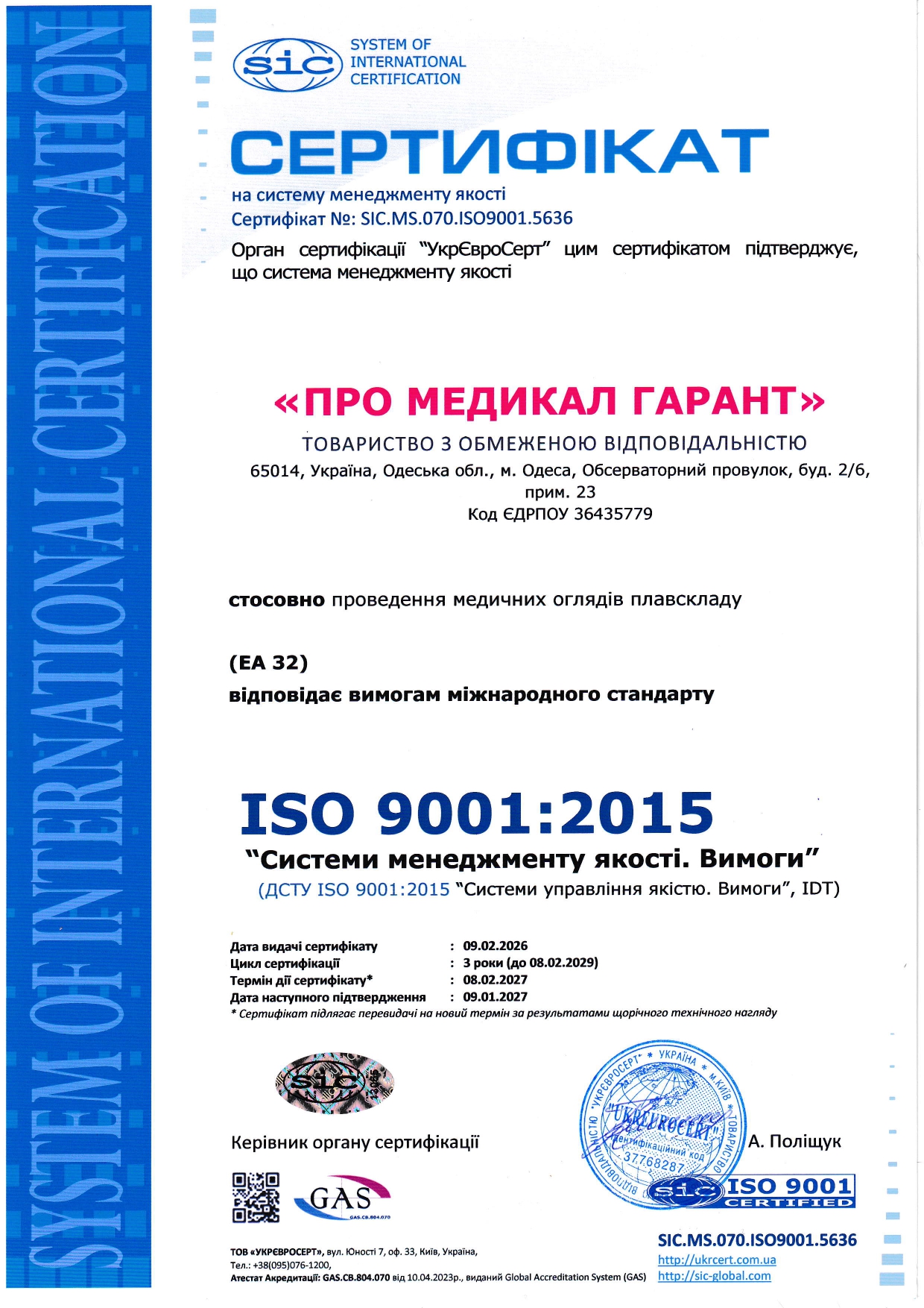 1. • Акредитації стандарту і якості послуг, що надаються BUREAU VERITAS № UA228891 від 06.07.2018